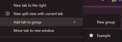 If you already have tab groups, it changes to Add tab to group, and will list all your groups to choose from.